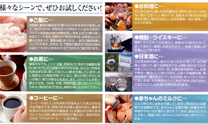新潟県の水の特長(天然水)は日本でも有数の軟水です。